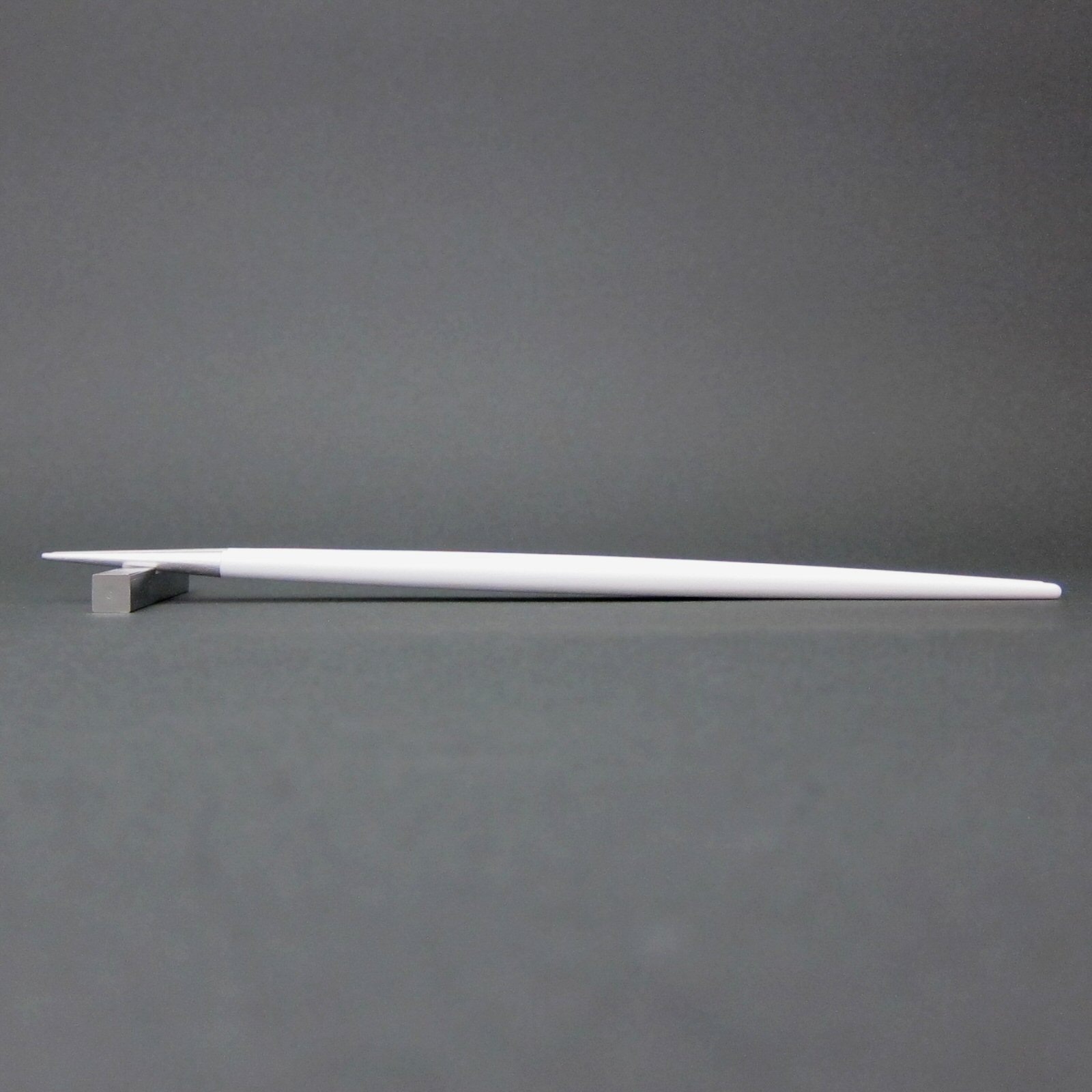 光沢を抑えたステンレス、ハンドル部分のホワイト樹脂の異なる素材の組み合わせのバランスと繊細なフォルムが仕上げまで職人の手で一本一本作られています。