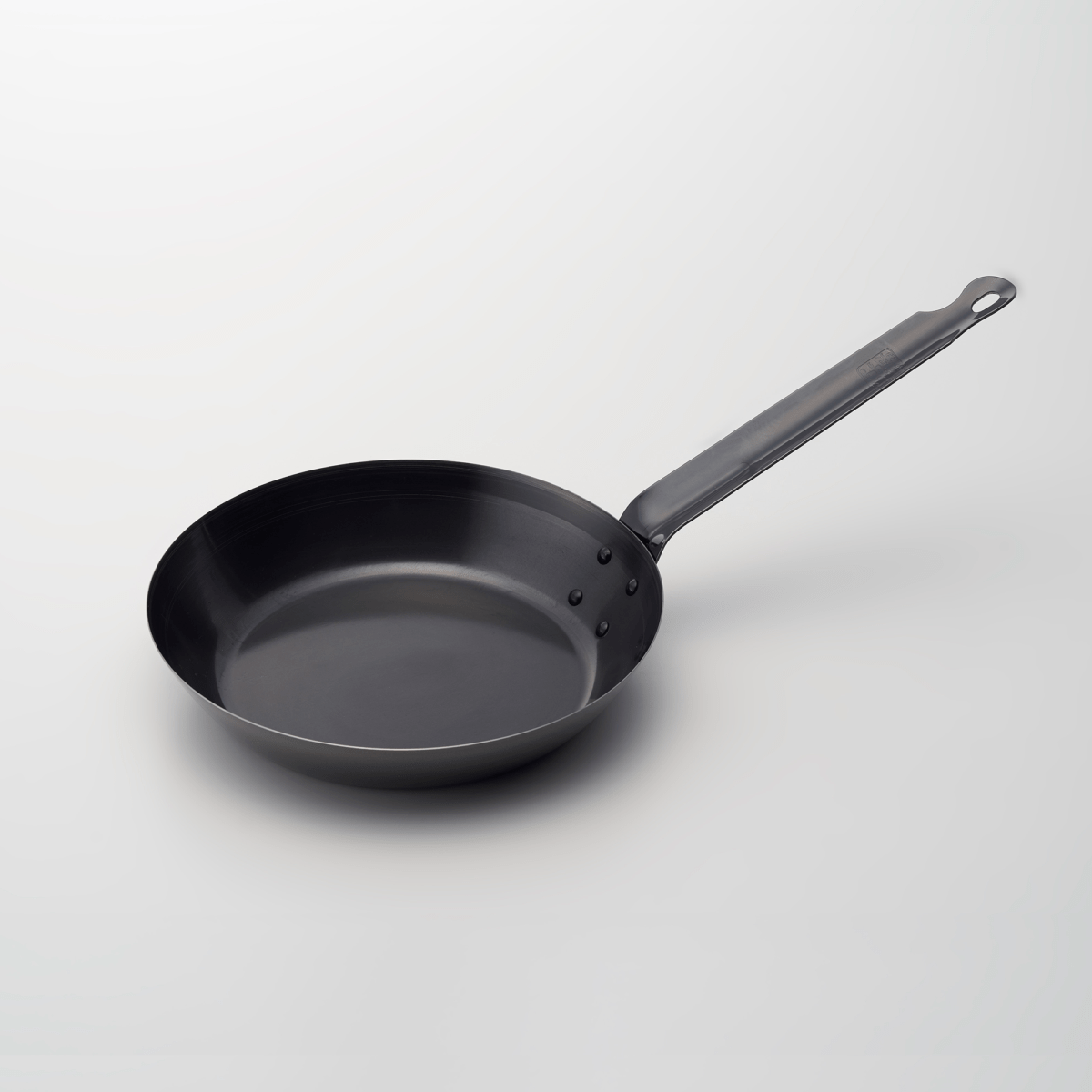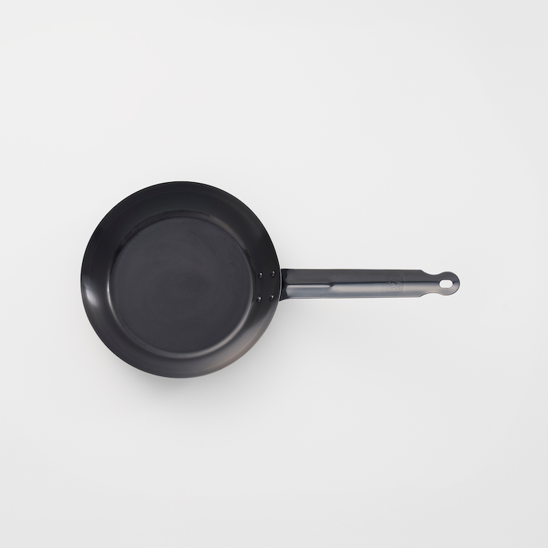 装飾を省いたシンプルな形状の鉄製フライパン。